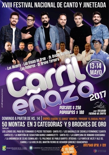 El próximo fin de semana se llevará a cabo el XVIII Festival Nacional de Canto y Jineteada en el predio Estación Facundo Zuviría de la localidad de El Carril.
