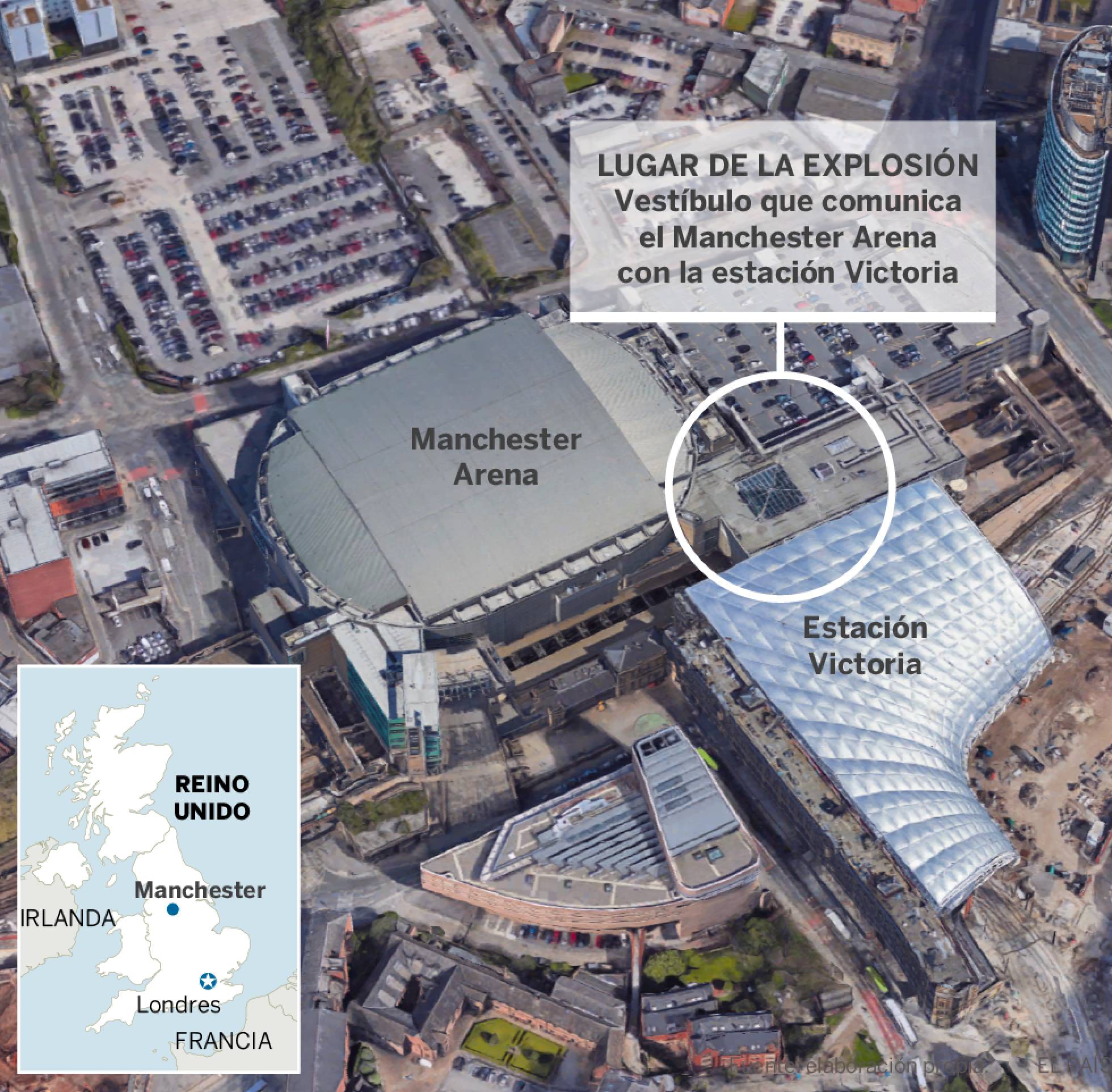 Las fuerzas de seguridad tratan el incidente como un ataque terrorista. Según ha informado esta mañana el jefe de la Policía de Manchester Ian Hopkins, el atentado fue cometido por un solo hombre, con un artefacto explosivo improvisado. Hopkins ha señalado que este individuo habría muerto tras accionar la carga. Ningún grupo terrorista ha asumido por el momento la autoría del ataque, que se produce a 15 días de las elecciones generales.
