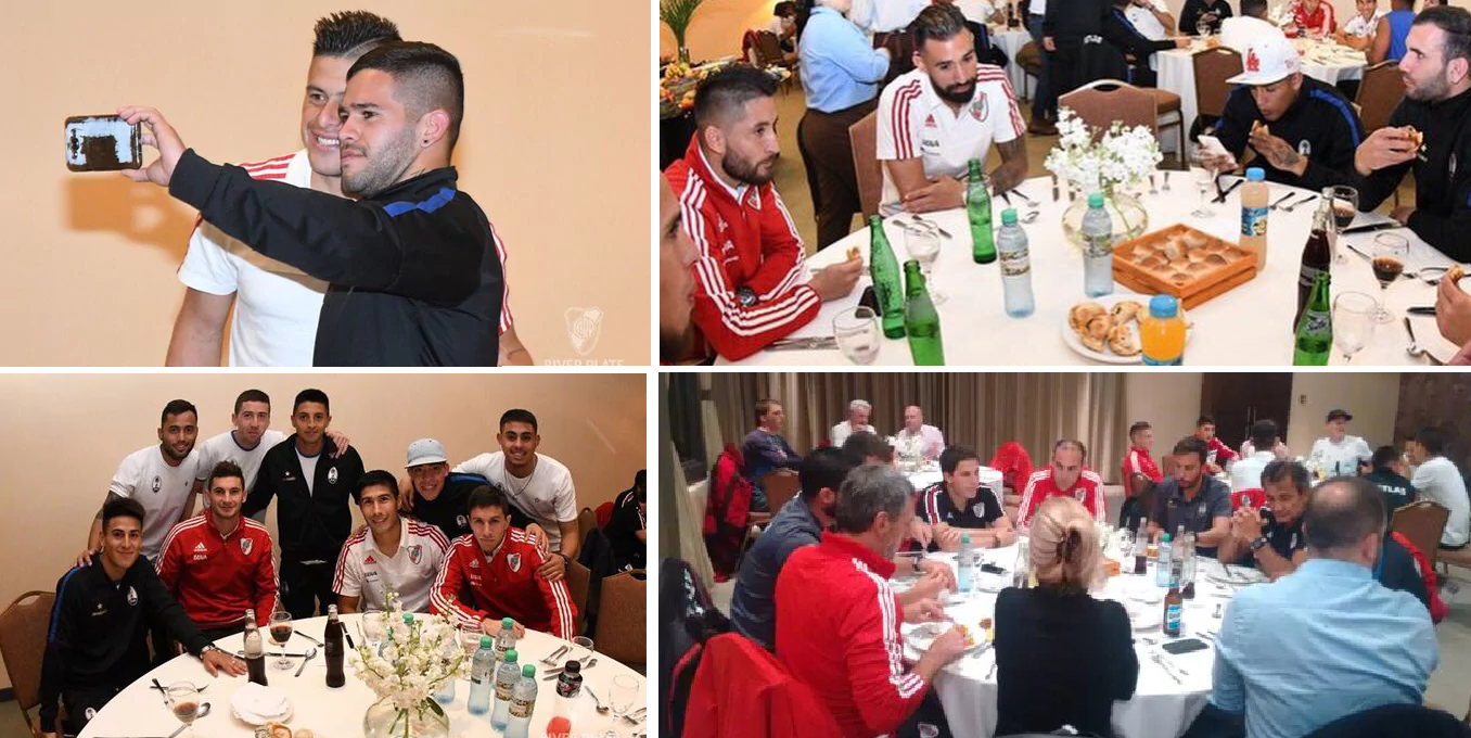 Allí ambos planteles, cuerpo técnico y dirigentes compartieron una amena cena. Las imágenes las compartió el club de Núñez a través de su cuenta oficial de Twitter.