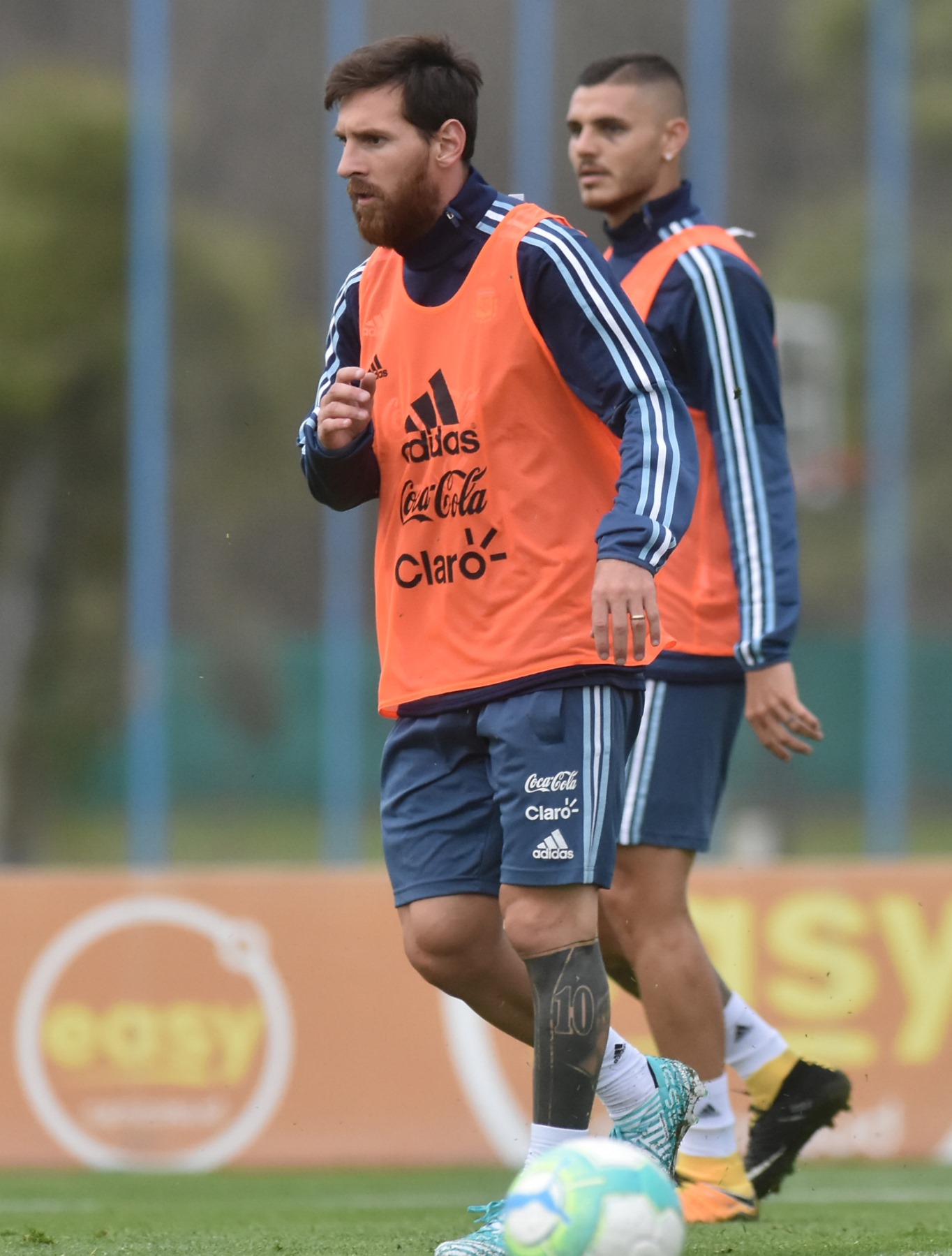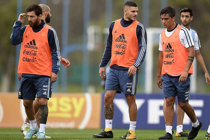 En el primer día de entrenamiento pensando en el duro duelo ante Uruguay, Jorge Sampaoli hizo un entrenamiento táctico en donde dispuso que Lionel Messi, Paulo Dybala y el mencionado delantero del Inter compartieron la parte ofensiva del equipo.