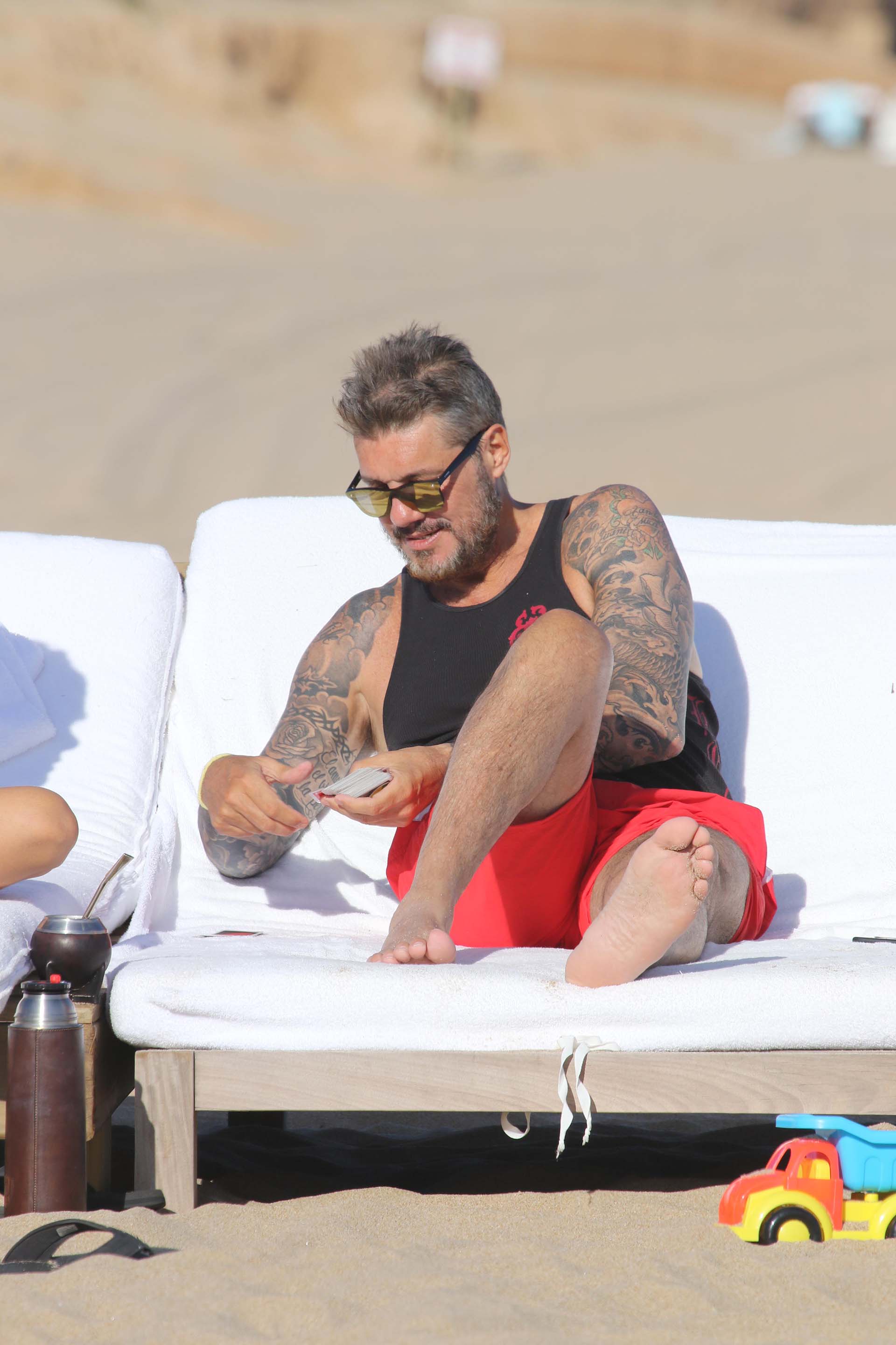 Así como pudieron captar diferentes paparazzis, el conductor de ShowMatch aprovecha los días de sol en la playa con Guillermina Valdes, y se mostró de muy buen humor: compartió mates, charlas y risas con su pareja, hubo tiempo para jugar a las cartas con Dante, uno de los hijos de su mujer, y disfrutar de la diversión en la arena con Lolo, su hijo más chico, según lo expresa Ciudad Magazine.