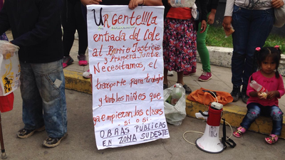 Pasado el mediodía, vecinos de barrios Justicia, Santa Mónica y Primera Junta se manifestaron en las puertas del Centro Cívico Municipal (CCM) para reclamar el arreglo de las calles ya que debido su pésimo estado desde hace un mes los colectivos no ingresan a la zona.