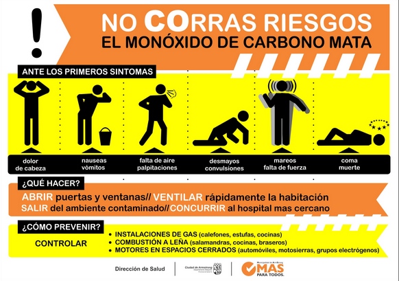Suarez, dijo que los síntomas a tener en cuenta son mareos, vómitos y dolor de cabeza. En el caso de que uno llegue a un lugar donde se presume que las personas están intoxicadas es sacarlos inmediatamente hacia el exterior y llamar al servicio de emergencia. Mientras se espera el arribo de la asistencia se puede ver el pulso de las personas, que si no ha vuelto en sí al oxigenarse afuera, se le puede hacer reanimación.