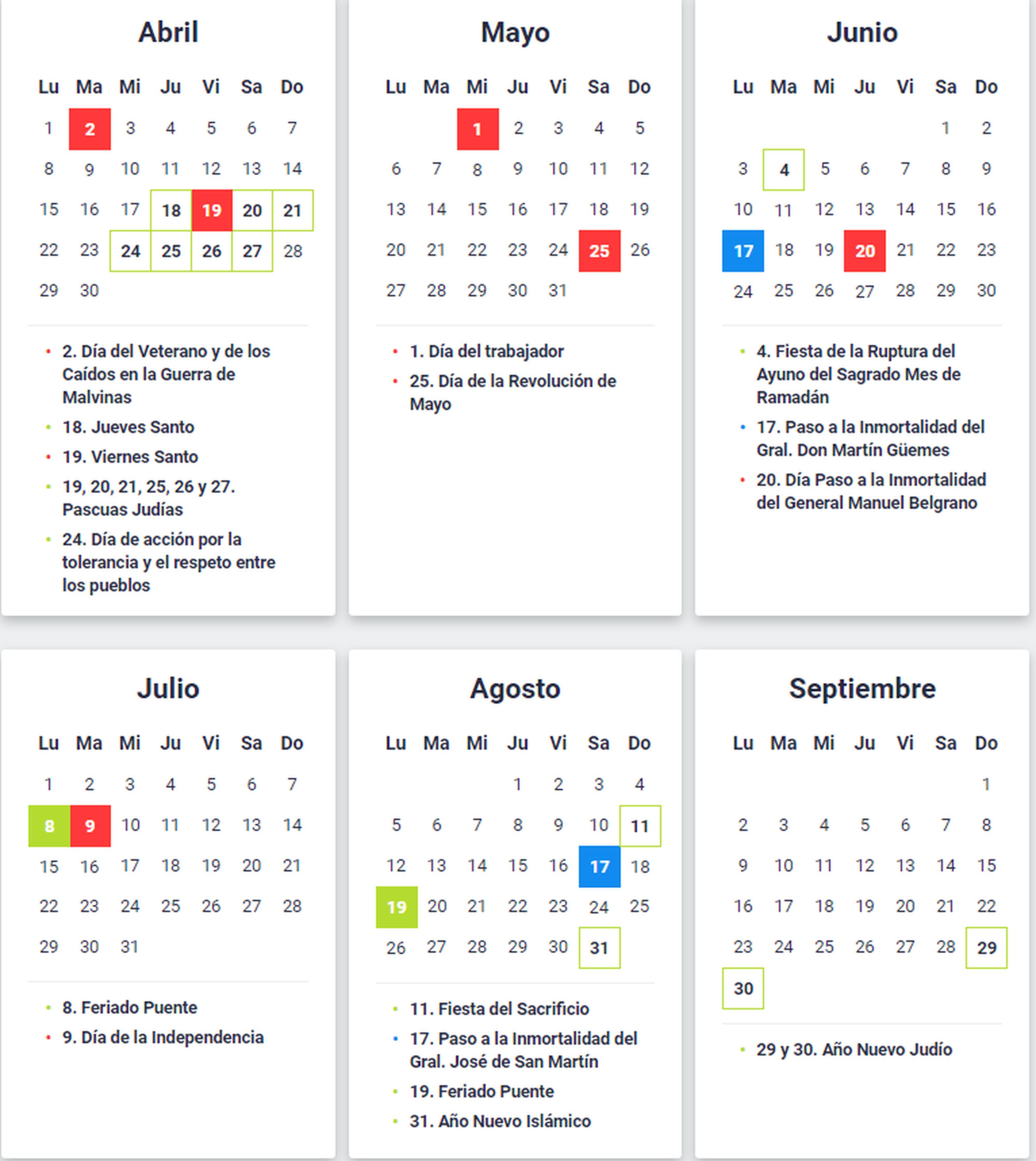 Sin embargo, dicen que lo bueno dura puro y el lunes, cuando haya que volver a trabajar, ya estaremos tachando el almanaque para llegar al próximo feriado, que será recién diez días más tarde, el 1 de mayo, en conmemoración por el Día del Trabajador. Este año cae miércoles y habrá que estar atentos dado que está anunciado un paro de transporte que afectará a todo el país para el 30 de abril.