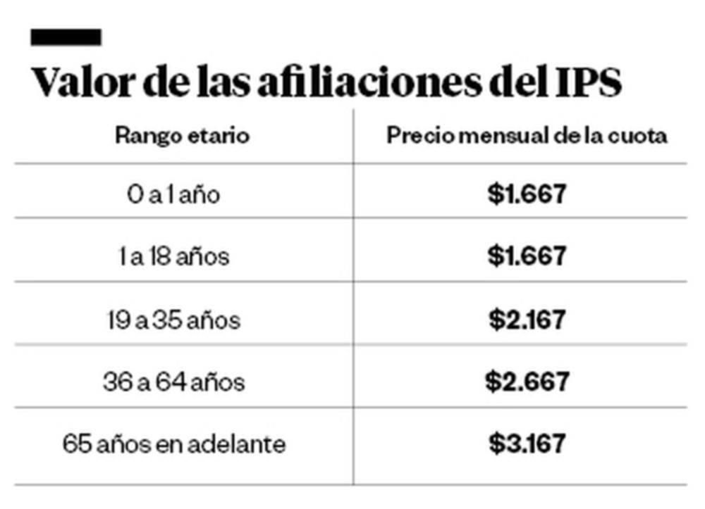 Las cuotas en las empresas de medicina prepaga para afiliados individuales de hasta 30 años rondan entre los $3.000 y $5.500. Mientras que en el IPS, el mismo servicio arranca en $1.667 hasta los 18 años y se eleva a $2.167 hasta los 35 años.