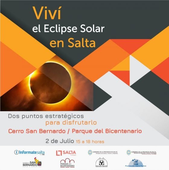 Comienza la cuenta regresiva para el fenómeno astronómico que pasará por Argentina y desde Salta las expectativas van en aumento. Sabiendo que se trata de una oportunidad única, InformateSalta junto a diversas instituciones, organizaron dos eventos que sucederán en simultáneo el próximo martes: en el Parque del Bicentenario y el Cerro San Bernardo. Ambos espacios contarán con especialistas en el tema, equipos y atractivos para que toda la familia pase una tarde diferente.