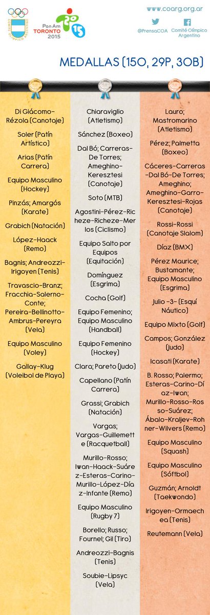 Deportes27/07/2015Argentina se había propuesto para Toronto 2015 el desafío de alcanzar o superar las 80 medallas conseguidas en los Juegos de México 1955, la mayor cosecha en unos Panamericanos realizados en el extranjero, y pelearle el sexto lugar del medallero a Colombia, para subir un escalón respecto de Guadalajara 2011.
