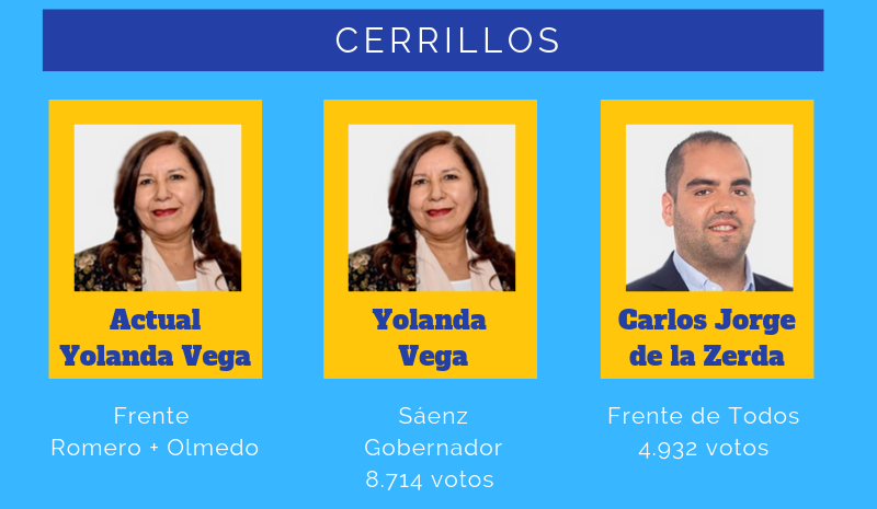 Cerrillos, La Merced, El Carril, Chicoana y Coronel Moldes seguirían con los mismos jefes comunales. En Rosario de Lerma habría una cara nueva al igual que en Quijano, donde Manuel Cornejo sufrió una gran derrota.
