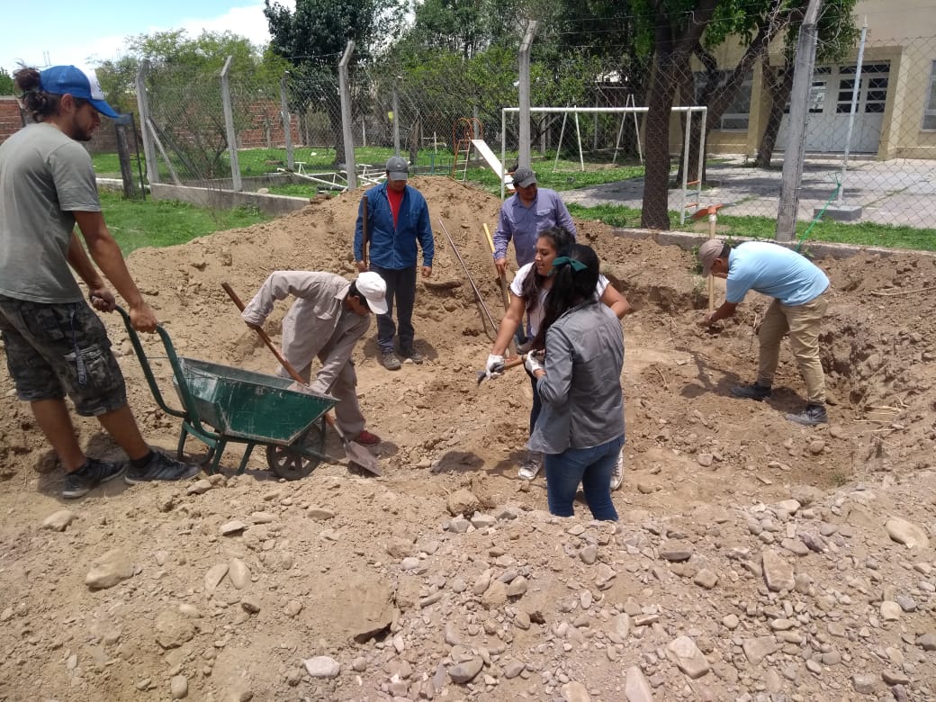 Con la colaboración de distintas organizaciones, miembros de la comunidad educativa, vecinos y un equipo técnico especializado, se construye una cisterna de captación de agua de lluvia que permitirá abastecer 16 mil litros de agua y fomentar el desarrollo de huertas orgánicas en la escuela.