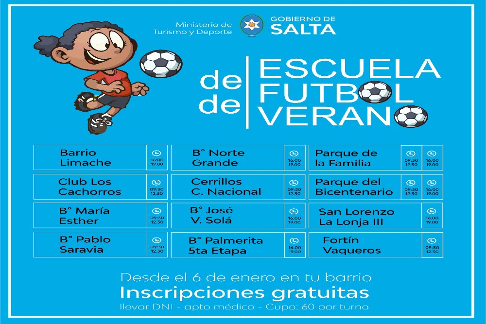 Hoy culmina el período de inscripciones para participar de las Escuelas de Fútbol de Verano las que se desplegarán en 15 centros incluyendo a los municipios de Vaqueros, San Lorenzo, Cerrillos y Capital.
