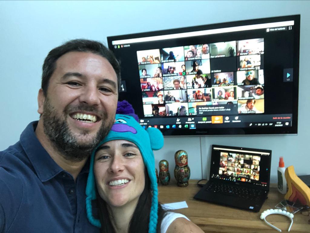 El sábado 4 de abril, fecha prevista para el gran evento, la familia y amigos de los novios decidieron hacerles una sorpresa insospechada: “Fue increíble, tenían todo preparado, habían practicado el tema de la conexión por Zoom y fueron puliendo algunas cosas puntuales como el sonido, la cámara y paralelamente armaron sorpresas”, nos señala Mili.