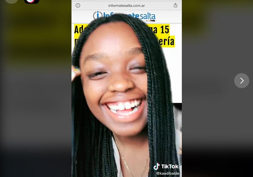 Resulta que la protagonista de esta noticia, una joven española llamada Kadi, llegó hasta nuestro portal, donde no solo vio la nota sino que la compartió por su cuenta de TikTok.