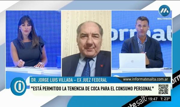 Durante el programa televisivo InformateSalta por Canal 9 Multivisión, el ex Juez de Cámara, Jorge Luis Villada fue consultado por el consumo y el paso de la hoja de coca en Salta. Fue claro al explicar que existen dos problemas.