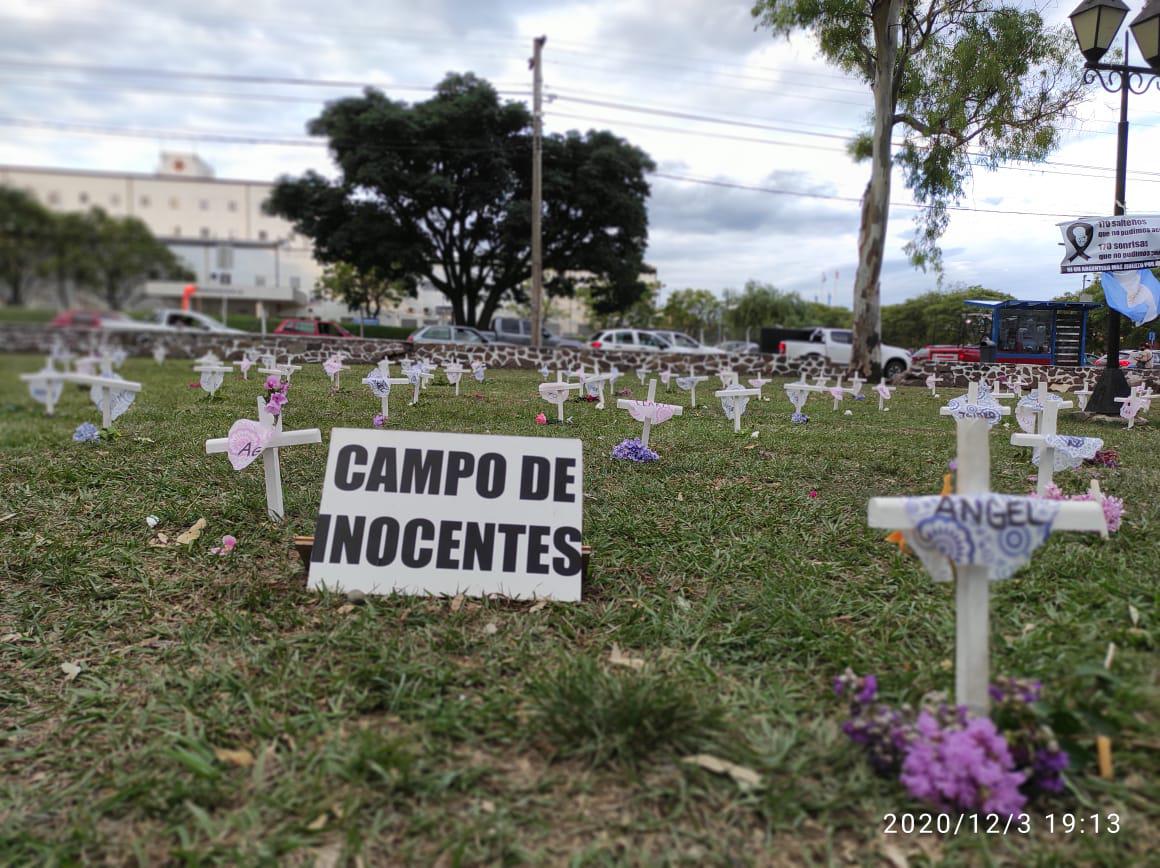 "Campo del inocente": Con una intervención, salteños rechazaron el proyecto del aborto