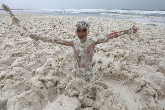 Buena aclaración para Lucca y sus hermanas, Serena y Catalina, que son de la ciudad de Buenos Aires y se adueñaron del frente de playa que corresponde al balneario 6 de Punta Mogotes para convertirlo en una experiencia lúdica inolvidable. Solo se les ven los ojos entre tanta espuma con consistencia de claras batidas a nieve y casi tan pegajosa como un merengue.