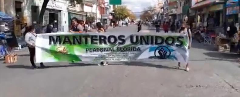 Protesta de manteros en pleno centro provoca caos en el tránsito vehicular