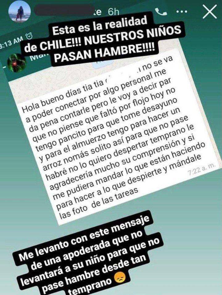 Tania Silva, una docente chilena, contó la historia y rápidamente todo el país estaba hablando del tema. El doloroso mensaje de texto que María Pilar Núñez le envió a la maestra para explicar los motivos de su ausencia de su hijo a la clase virtual que estaba a punto de empezar, conmovieron a todos.