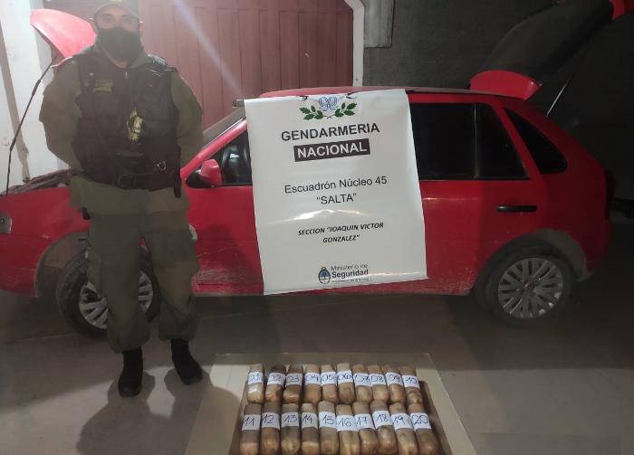 Personal dependiente del Escuadrón 45 “Salta” controló un vehículo Volkswagen Gol Power sobre la Ruta Provincial N° 30, a la altura de la balanza de vialidad provincial, en el cual viajaban un hombre y una mujer de nacionalidad argentina, desde la ciudad salteña de San Ramón de la Nueva Orán con destino final San José de Metán.