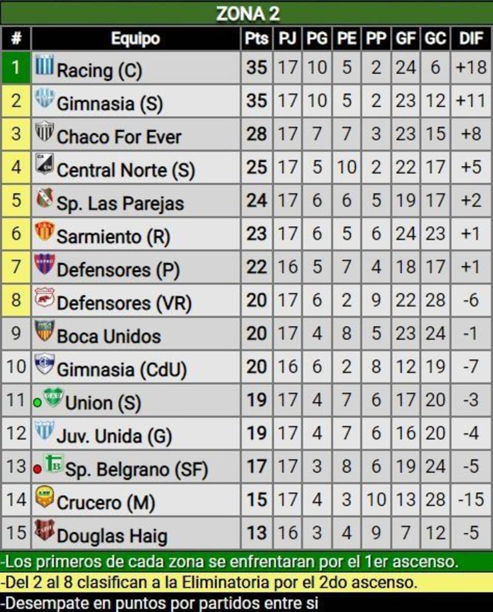 Cabe recordar que solamente el primero tendrá la chance de ir por el primer ascenso, contra el ganador de la zona 1.