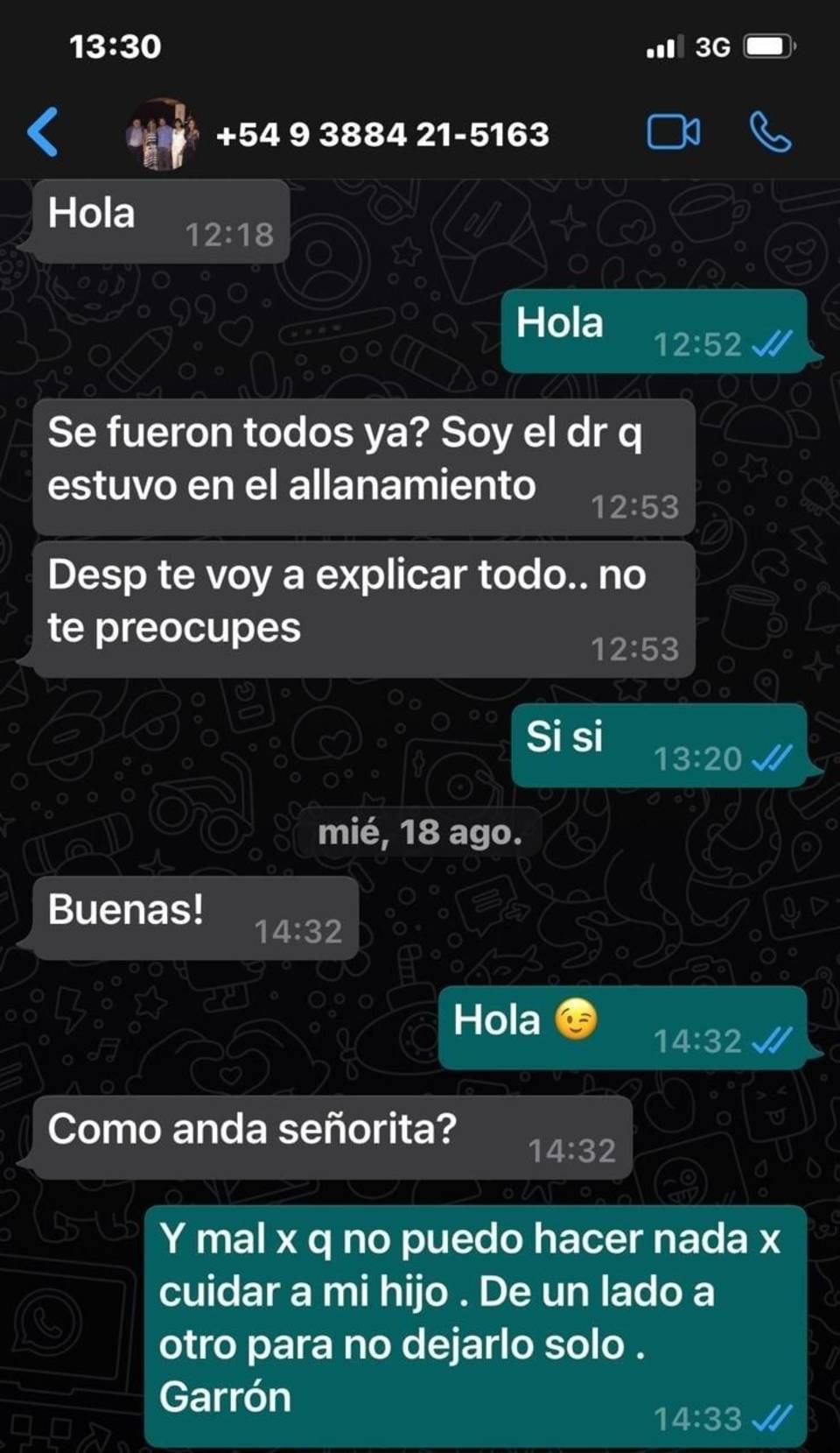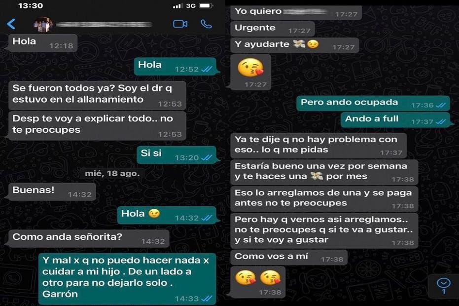 Luego del procedimiento judicial, la dueña del inmueble allanado recibió un mensaje a través de Whatsapp, donde el ayudante fiscal que se había presentado como tal, le habría propuesto favores sexuales a cambio de "arreglar esas cuestiones", haciendo referencia al procedimiento judicial que estuvo a cargo.