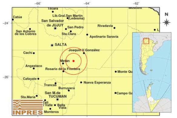 Hace instantes se registró un temblor de 4.8 en Metán y Rosario de la Frontera, las primeras informaciones indican que ocurrió a 10 kilómetros de profundidad a las 20:38.