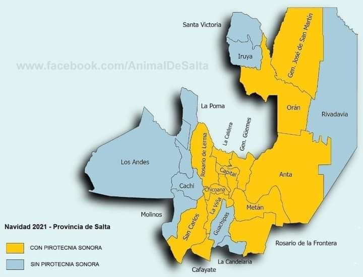En este sentido, el proteccionista Lucas Iñigo realizó un relevamiento del comportamiento de la comunidad respecto al uso de la pirotecnia en esta última Navidad tanto en los barrios salteños, como en el interior provincial. A partir de ello, compartió un mapa que refleja el uso de pirotecnia sonora en la Provincia de Salta durante la Nochebuena.