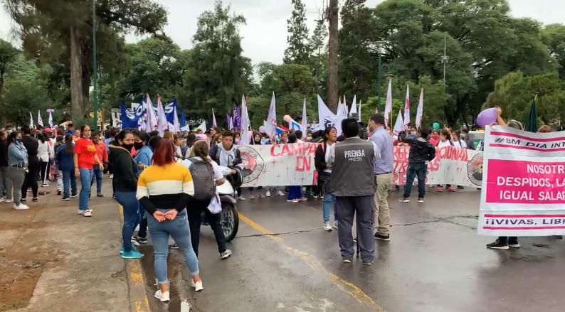Bajo el lema “la deuda es con nosotras no con el FMI”, cientos de mujeres coparon la avenida San Martín para movilizarse hasta la legislatura de la provincia. La marcha comenzó cerca de las 09:30 horas, con banderas de diferentes organizaciones sociales y sindicales.