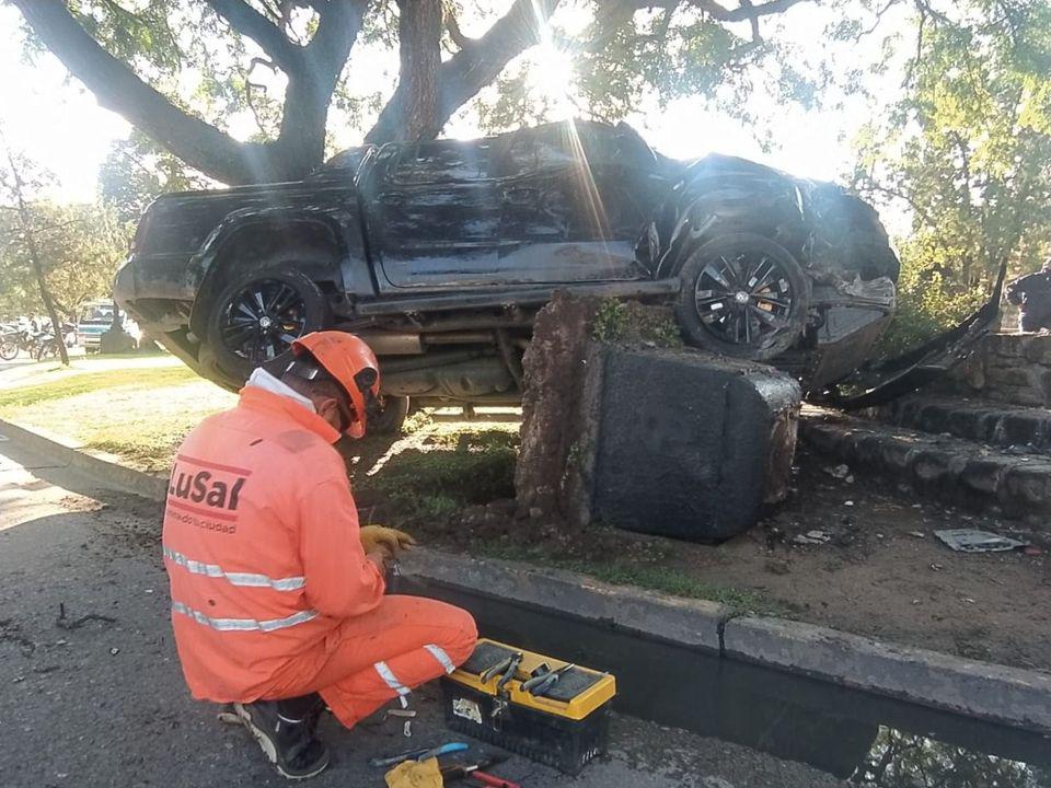 Aproximadamente a las 7 de la mañana, una camioneta perdió el control, estrellándose contra la rotonda del Monumento 20 de Febrero. Se trataría de una VW Amarok negra que terminó incrustada en un cantero.