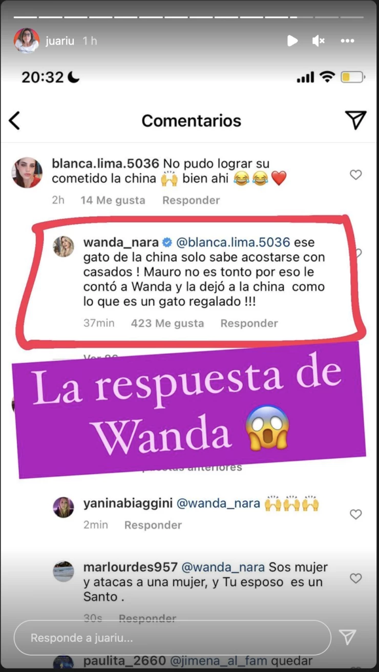 Entonces, , desde su cuenta verificada, escribió: “Ese gato de la China solo sabe acostarse con casados. Mauro no es tonto, por eso le contó a Wanda y dejó a la China como lo que es, un gato regalado”. ¿Qué? Impresionante, hay capturas de todo y no existen excusas para maquillar semejante frase de Nara.