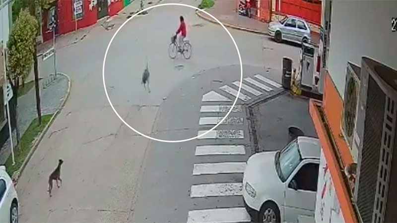 Tras el choque con la bicicleta, la mujer salió despedida y cayó directo al piso. Sin entender lo ocurrido, la víctima intentó buscar explicaciones. El animal, recuperó la vertical con cierta dificultad y siguió camino ya no a tanta velocidad, posiblemente también dolorido por la colisión.