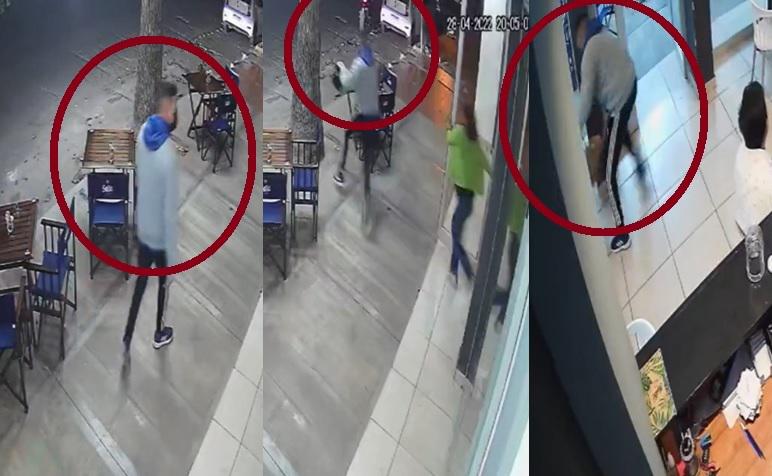 ¿Qué fue lo que pasó? Las imágenes registradas por las cámaras de seguridad del local muestra cómo un sujeto, vestido con buzo gris y capucha azul, se aproxima caminando al bar e ingresa al mismo, y al mismo tiempo por la calle se aproxima una motocicleta que se posiciona sobre la vereda, al costado de un automóvil estacionado.