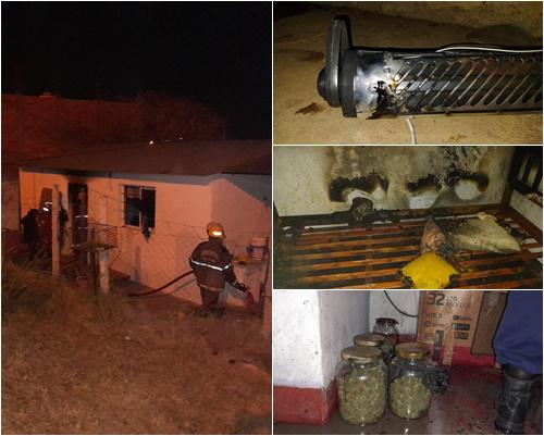Asimismo, indicaron desde el cuartel de bomberos voluntarios, que se descubrió además ramas y hojas secas almacenadas en recipientes de vidrio que aparentemente serían cannabis sativa , por lo que intervino personal de Drogas Peligrosas.