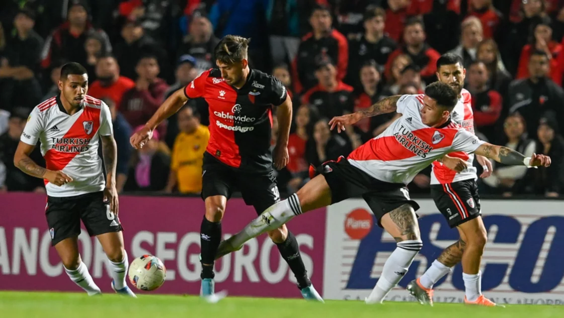 El duelo en el Brigadier Estanislao López comenzó con un River protagonista desde el primer minuto cuando Enzo Fernández conectó con Julián Álvarez y el arquero local desactivó el peligro anticipando la jugada.