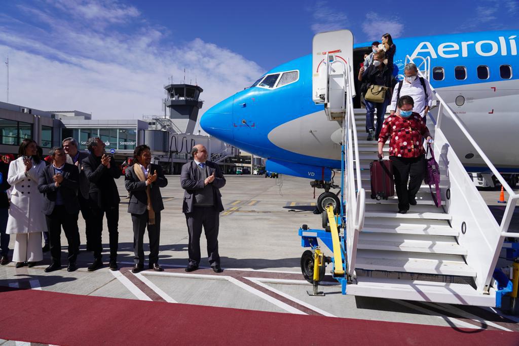 La llegada del avión fue presenciada por el gobernador Gustavo Sáenz, el Ministro de Turismo y Deporte de la provincia Mario Ernesto Peña, el presidente de la Cámara de Turismo de Salta, Gustavo Di Mécola, la presidenta del Instituto de Promoción Turística de Salta, Manuela Arancibia, el presidente de Aerolíneas Argentinas, Pablo Ceriani, entre otros.