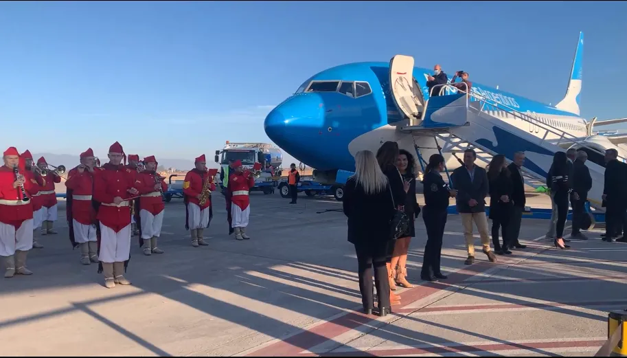 Los infernales, música, comida regional, vino salteños y folcklore dieron color al aeropuerto Martín Miguel de Güemes que recibió a los primeros turistas que realizaron la ruta directa Salta – Bariloche.