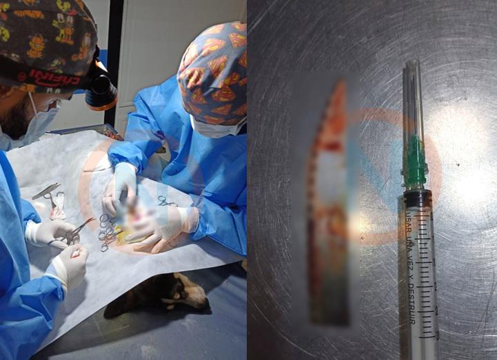 Con ayuda de personal de Salud Animal del municipio, la trasladaron hasta el Centro Municipal "Patitas Callejeras", donde los veterinarios la intervinieron quirúrgicamente y lograron sacarle con éxito el cuchillo. Desde ahí también dieron aviso a los propietarios para que la acompañen.