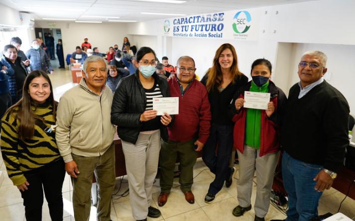 Y dijo: “Hoy, empleados de una cadena de supermercados y otros comercios se llevaron su certificado en mano. La idea es que todos puedan ser partícipes de este curso que brinda el municipio”.