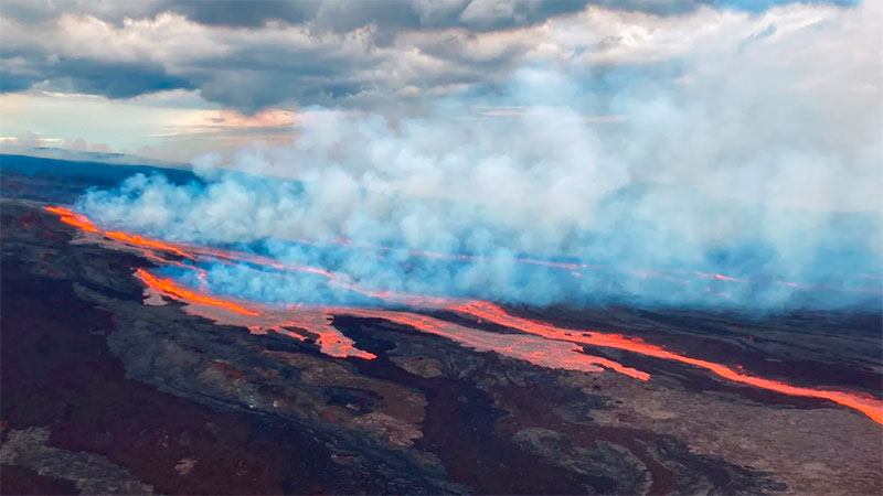 Los flujos de lava permanecieron “contenidos” dentro de la caldera de la cumbre de Mauna Loa, pero la erupción podría representar una amenaza para los residentes cercanos si las condiciones cambian, informó el Servicio Geológico de los Estados Unidos (USGS, por sus siglas en inglés) a las 11:45 p. m. hora local del domingo (9:45 p. m. GMT del lunes) unos 15 minutos después de la erupción dentro del Parque Nacional de los Volcanes de Hawái.