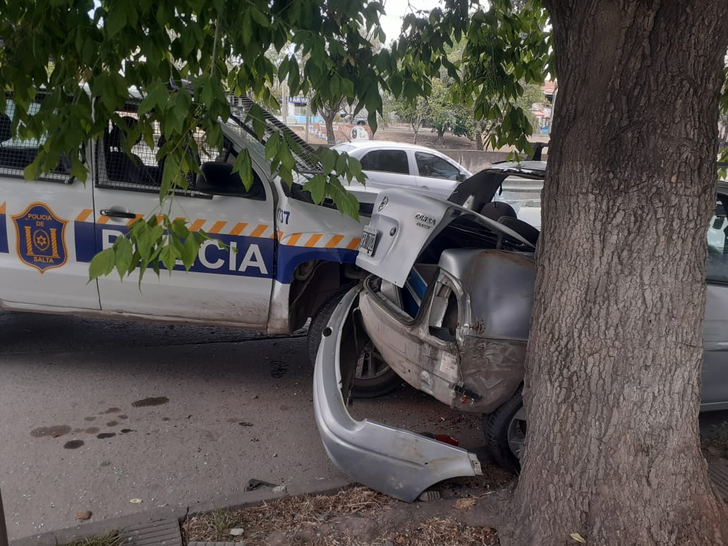 Según el informe al que tuvo acceso InformateSalta, el accidente ocurrió a las 15 en la calle Hipólito Yrigoyen 762, cuando el conductor del patrullero se percató del frenado repentino de un vehículo que circulaba adelante.