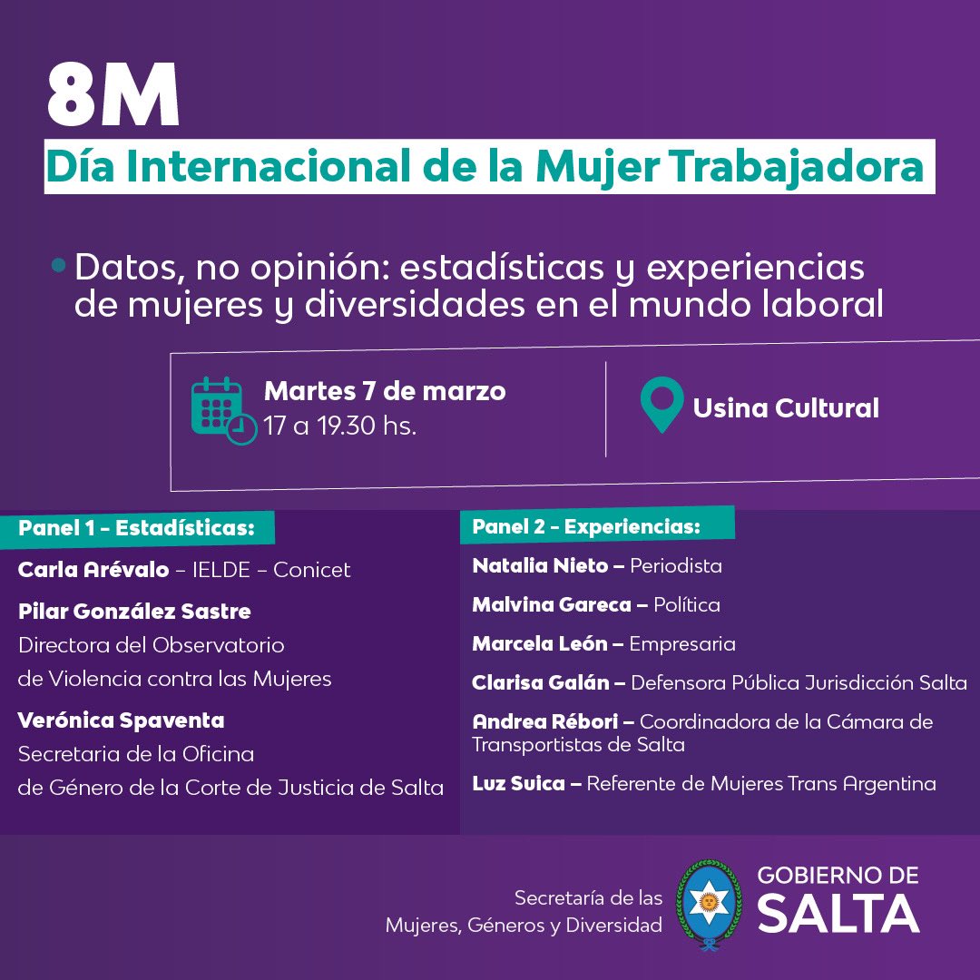 El 8 de marzo se conmemora el día Internacional de la Mujer y desde la Secretaría de las Mujeres, Géneros y Diversidad proponen una actividad que pretende hablar sobre la realidad de las mujeres y diversidades salteñas en el mercado laboral.