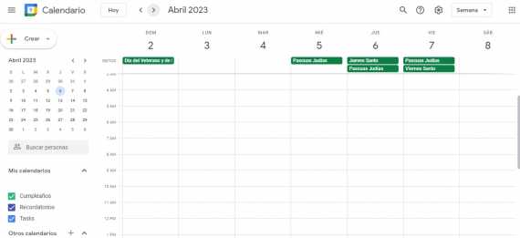 Cuando ingresás a la herramienta, te encontrás obviamente con el calendario y en la parte inferior izquierda, podés ver que está la opción de activar la opción "Días Festivos de Argentina".