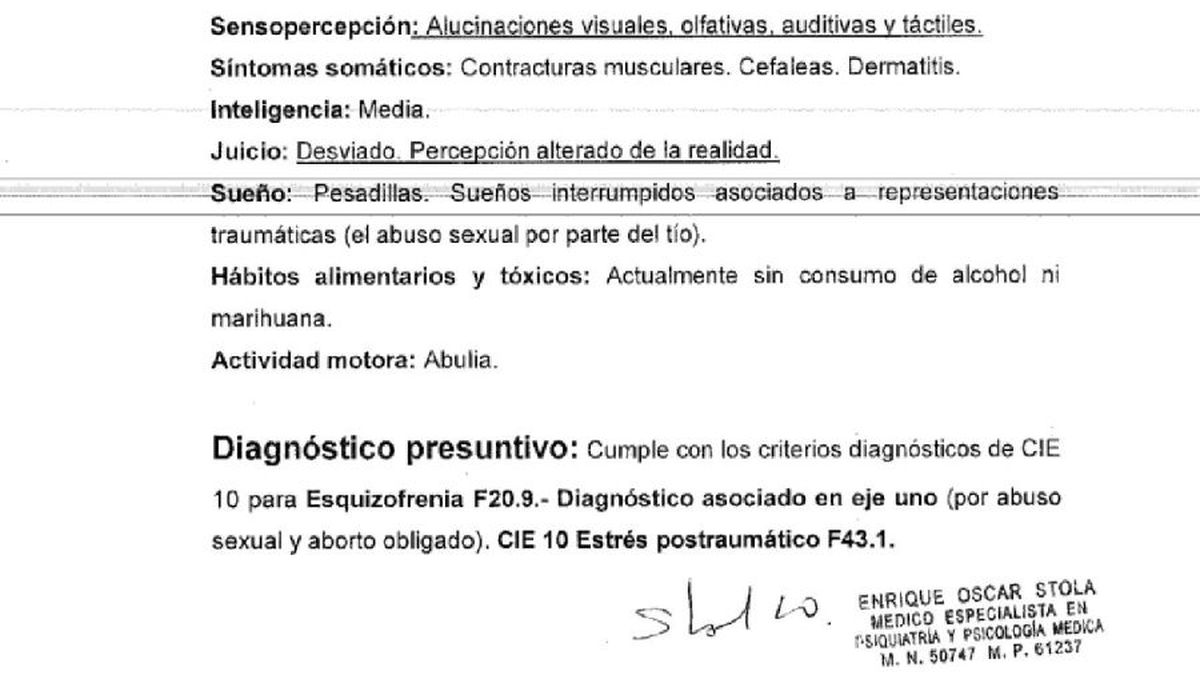 Stola da cuenta en su informe de una “marcada apatía”, con pensamientos “delirantes” y una dificultad para la “comprensión de las preguntas”.