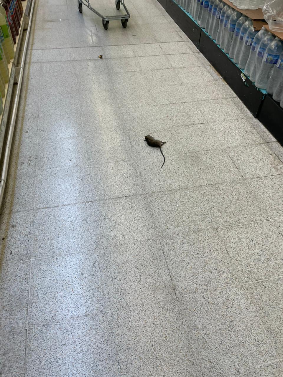 En periodista Kimón Demitrópulos publicó en su cuenta de Twitter imágenes y un video de una rata muerta en el pasillo del supermercado.