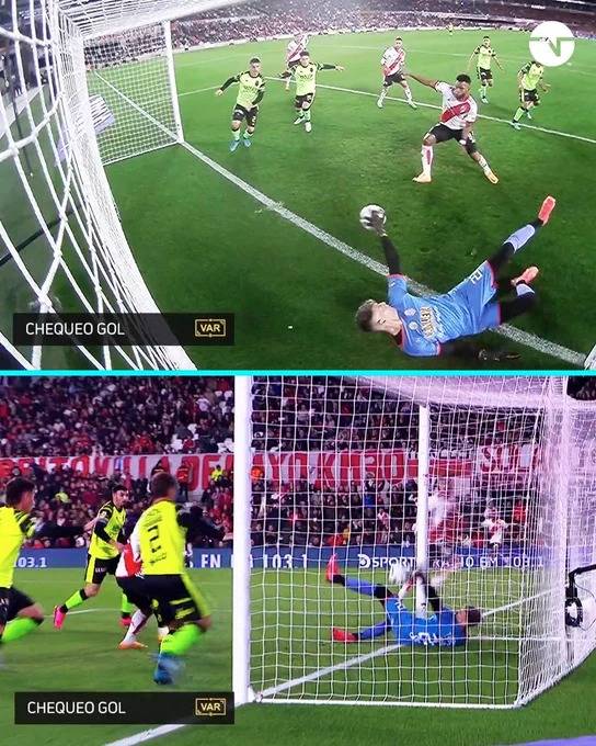 A los pocos minutos River lo empataba con un cabezazo de Enzo Díaz que Villar pareció sacar de adentro, pero luego de seis minutos de revisión el VAR anuló el gol al no poder comprobar si la pelota ingresó en su totalidad.