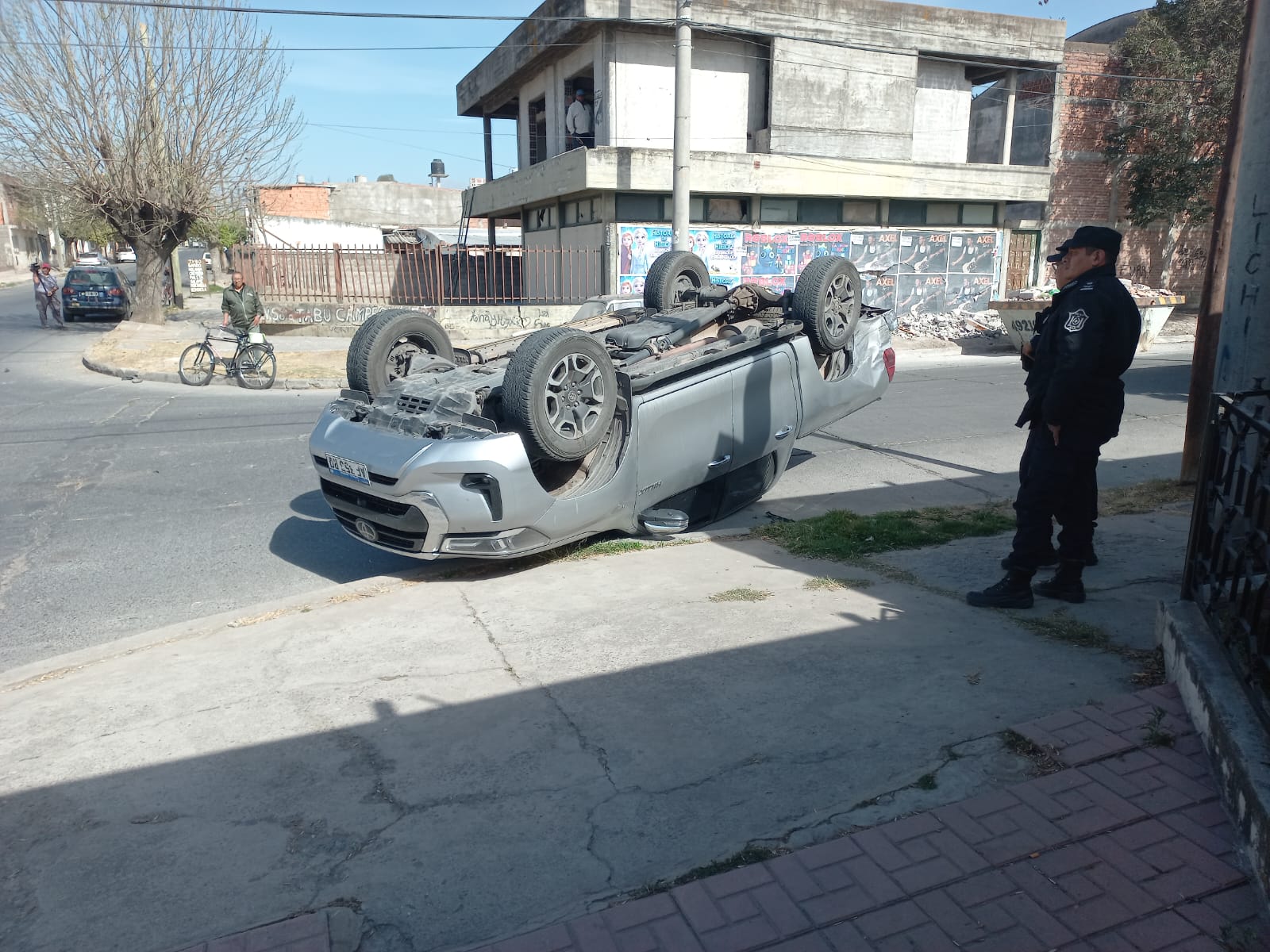 La esquina de Juana Moro de López y Dean Funes fue testigo de un fuerte siniestro vial entre dos camionetas en la mañana de hoy. Una de ellas terminó volcando y su conductora con lesiones.