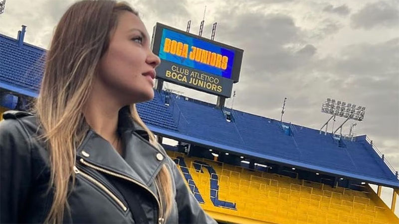 Fanática de Boca, también se encuentran numerosas fotos en la propia Bombonera y, haciendo un poco de foco, hasta se descubre un tatuaje que reza “Boca Juniors” con una banderita del club en uno de sus antebrazos.
