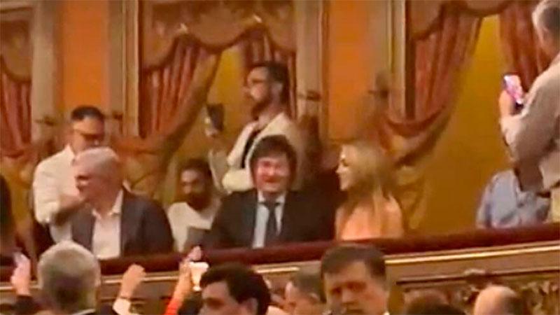 El escándalo se conoció a través de las redes sociales, con usuarios que captaron el incidente. Hubo gritos exigiéndole a Milei que se retire del teatro. Y hasta un violinista se animó a ensayar la marcha peronista.