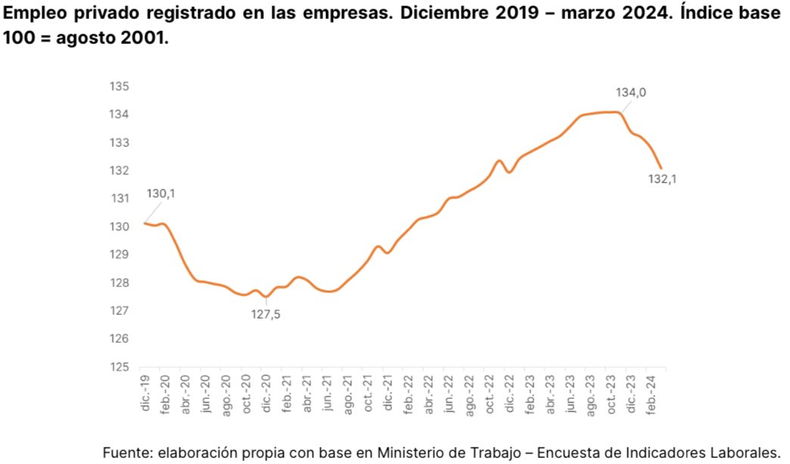 Aunque el apoyo de ciertos sectores continúa, la situación laboral golpea la puerta de millones de familias. A la fuerte caída del empleo privado se suman los masivos despidos en el sector público.