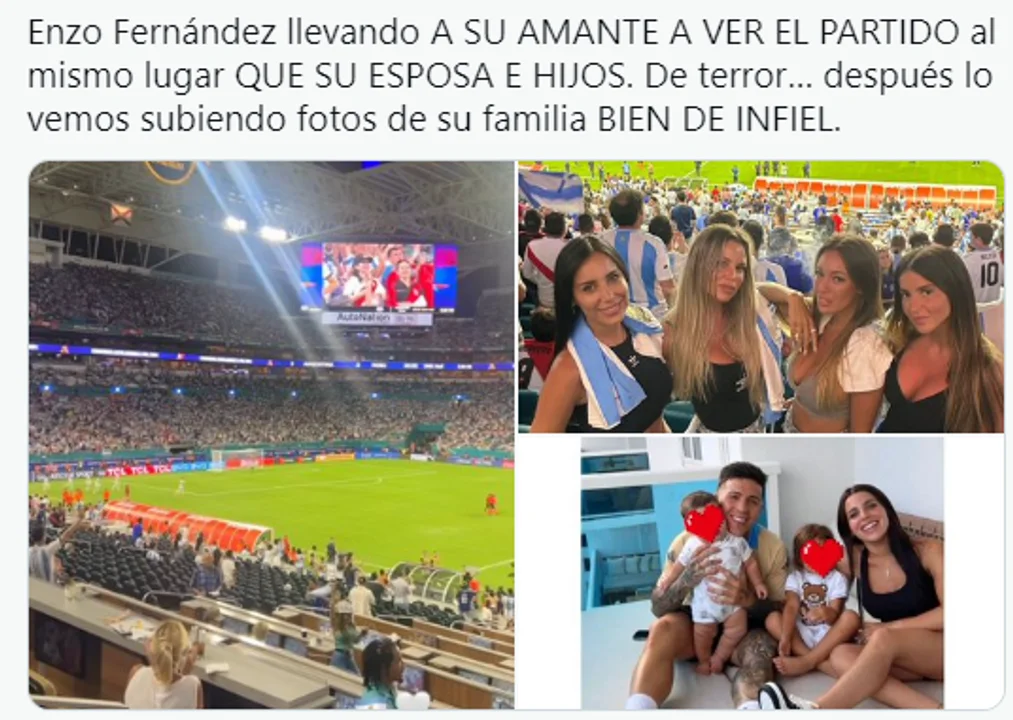 Al margen del buen desempeño de la selección Argentina, se vio manchada la imagen de uno de sus pilares, pues el volante Enzo Fernández fue acusado de ser infiel en plena Copa América tras la aparicion de su ex pareja en un partido.