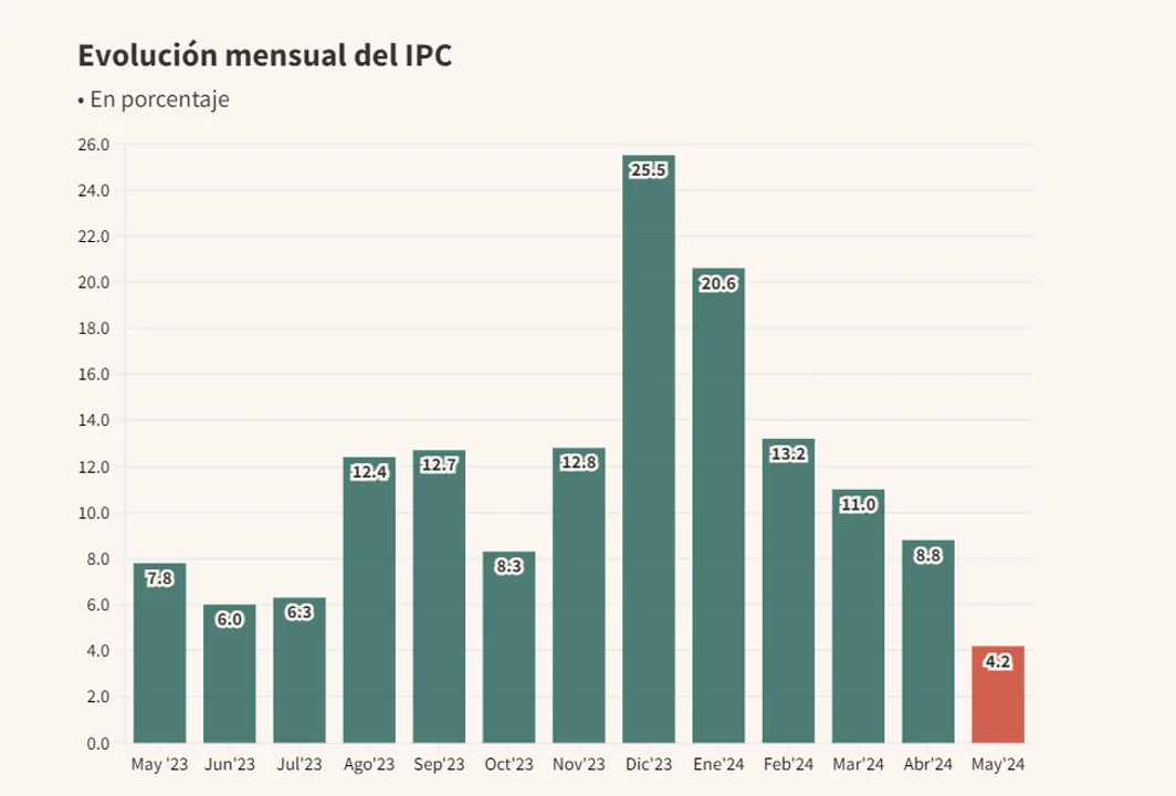 Según declaraciones de Milei, "la inflación va a hacer una pausa en su descenso". Esto mismo anticipó el último Relevamiento de Expectativas de Mercado (REM) del Banco Central, el cual proyecta un estancamiento de la inflación entre un 4,5% y un 5,5% para los meses que restan del año.
